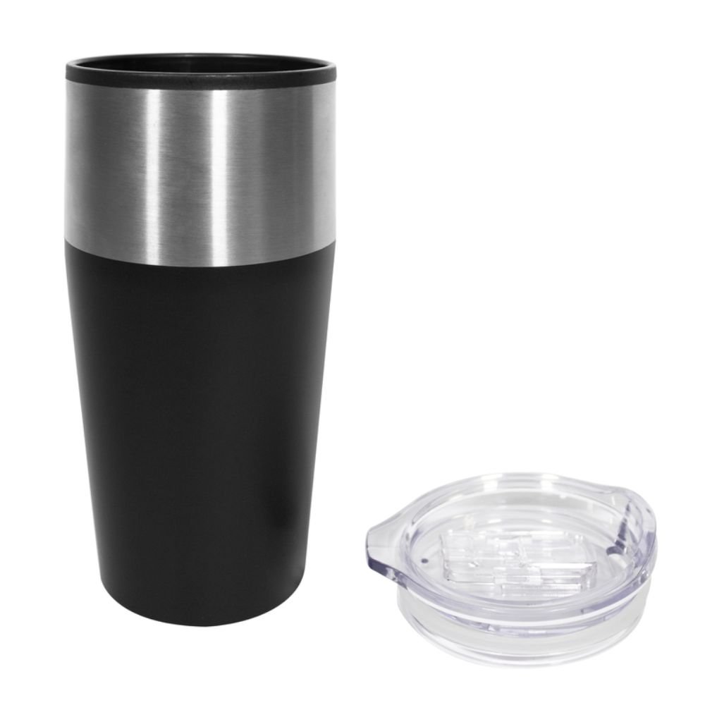 $ 3.200 + IVAMug de doble pared con interior de polipropileno y exterior combinado con acero inoxidable 201. Tapa plástica transparente a presión con anillo de silicona para un cierre seguro. Capacidad de 600 ml. Medidas Ø 8,5 x 18 cm. Presentación en caja de regalo.