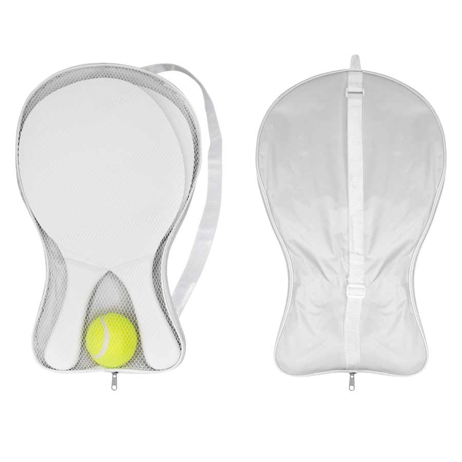 El Set de Paletas de Playa está fabricado en MDF esmaltado de 12 mm de espesor, ofreciendo resistencia y durabilidad para disfrutar al máximo en la playa o al aire libre. Cada set incluye dos paletas (21,9 x 39,5 x 1,2 cm aprox.), una pelota de tenis amarilla y un práctico bolso de poliéster blanco con frente de malla y cinta para colgar, ideal para transportar cómodamente. Disponible en varios colores vibrantes, es apto para personalización mediante serigrafía o DTF, convirtiéndose en una excelente opción promocional o recreativa.