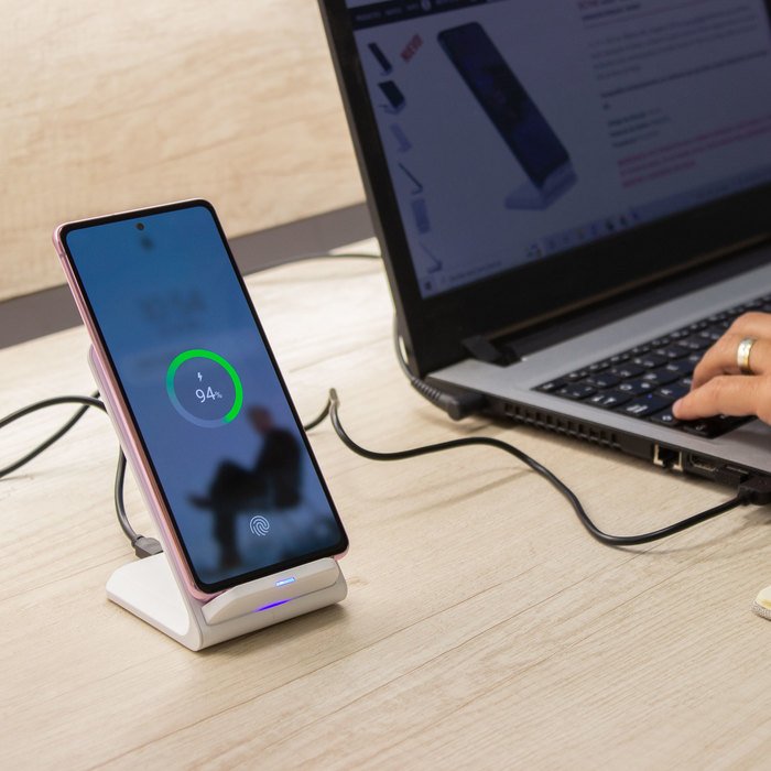 $ 8.450 + IVACargador USB inalámbrico de carga rápida, diseñado para mayor comodidad y eficiencia. Solo apoyá tu celular compatible con tecnología Qi y comenzará a cargar automáticamente. Su diseño permite la carga en posición horizontal o vertical gracias a su doble batería de 10W cada una. Fabricado en plástico ABS, incluye cable USB de 60 cm para conexión y se presenta en caja de regalo. Ideal para mantener tu dispositivo siempre listo y sin cables enredados.