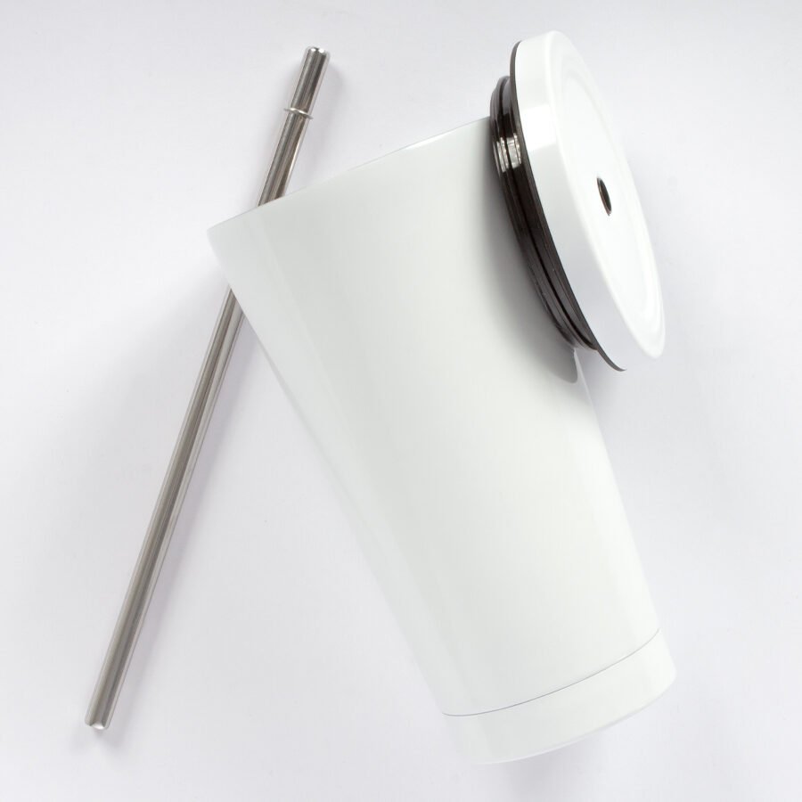 $ 8.130 + IVAVaso blanco de Acero Inoxidable, doble pared aislante, con tapa rosca y bombilla de Acero Inoxidable, para Sublimación. Calidad superior. Capacidad 550cc (15oz). Presentación en bolsa blanca + estuche de cartón blanco.