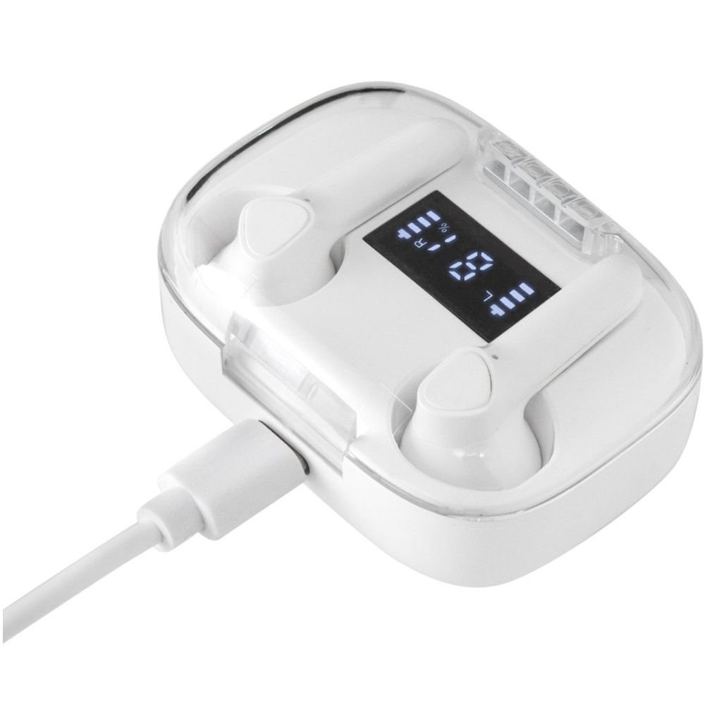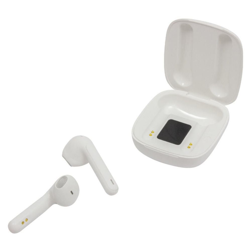 $ 14.850 + IVAAuriculares Bluetooth inalámbricos fabricados en plástico ABS, con tecnología Bluetooth 5.1 y estuche de carga con pantalla digital y tapa transparente. Ofrecen una autonomía de reproducción de 3 horas y alcance de hasta 15 metros. Cada auricular tiene una batería de 30 mAh, y la caja de carga, 250 mAh. Incluye cable USB tipo C (blanco o negro según el color del producto). Presentación en caja de regalo mate, a tono con el color de los auriculares.