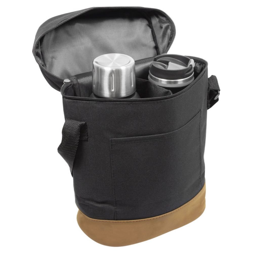 Este práctico bolso de 10 litros de capacidad es ideal para tus escapadas de fin de semana. Fabricado en poliéster resistente y con un elegante detalle en cuero PU, cuenta con interior acolchado y división interna para llevar un termo y otros accesorios esenciales. Incorpora un bolsillo externo para objetos pequeños y una correa regulable para mayor comodidad. Funcional y con estilo, es el compañero perfecto para picnics, paseos o momentos de relax al aire libre.