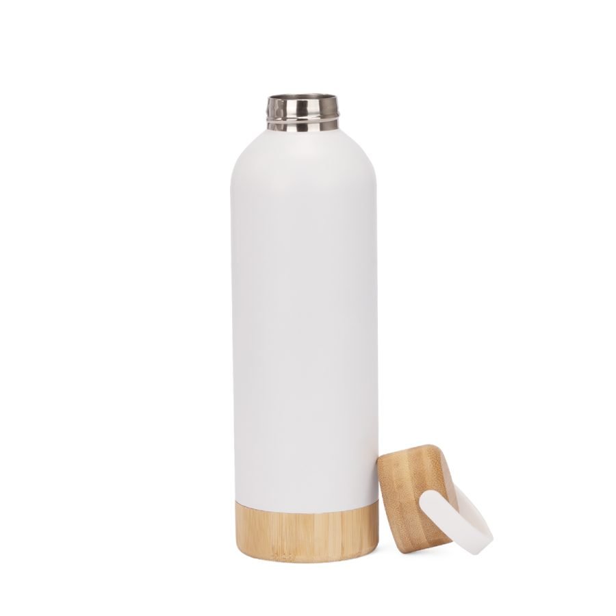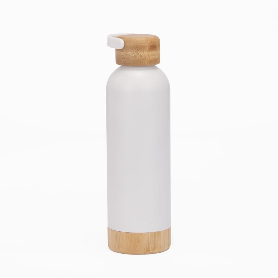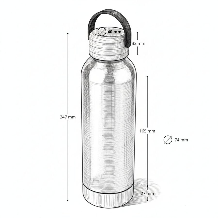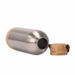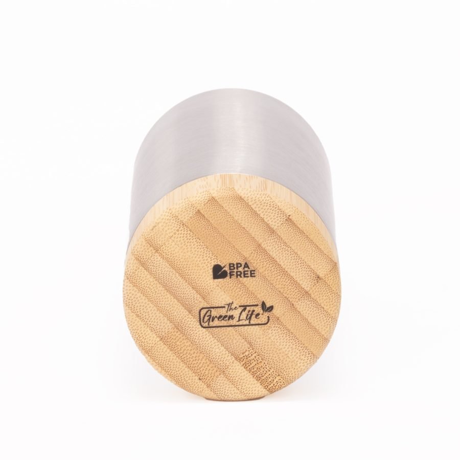 Botella térmica de 550 ml fabricada en acero inoxidable reciclado, diseñada para conservar la temperatura gracias a su sistema de doble pared. Su cuerpo metálico se complementa con una manga de bambú que aporta un contraste natural y mejora el agarre, mientras que la tapa de acero enroscable garantiza un cierre seguro. Con medidas de 252 x 76 x 76 mm, elaborada en acero inoxidable y bambú, y con certificaciones FSC y RCS, este modelo de The Green Life combina resistencia, diseño atemporal y compromiso sostenible.
