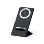 Cargador inalámbrico 15W. Fabricado en resistente poliéster 300D y con fijación magnética para poder usar el dispositivo mientras se produce la carga del mismo e incluyendo anillo adhesivo. Válido para todos los dispositivos con tecnología Magsafe y Qi. Plegado de pequeño tamaño para fácil transporte y presentado en atractiva caja individual de diseño. Inalámbrico 15W. Magnético. Plegable