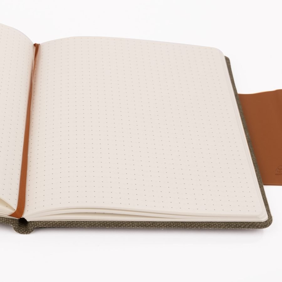 Este Cuaderno Ecológico combina lona reciclada y detalles en PU en un diseño elegante y funcional. Con 146 × 212 × 12 mm, incluye cierre imantado, cinta marcadora, bolsillo interior y 80 hojas punteadas de papel marfil certificado FSC. Materiales certificados GRS garantizan sostenibilidad desde su origen. Disponible en verde, natural y azul, ideal para personalización mediante grabado láser y para marcas que buscan unir estilo y conciencia ambiental.