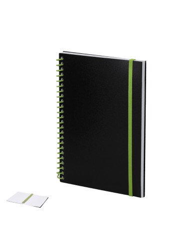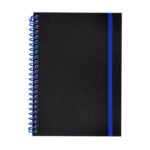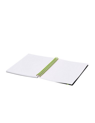 Libreta de anillas con tapas flexibles fabricadas en PP, interior con 80 hojas blancas a una raya, e incluye goma elástica a juego con las anillas. Medidas de 21 x 14,8 x 1,7 cm y peso de 200 gramos, ideal para estudio, oficina o notas diarias.