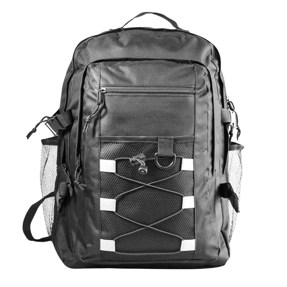 Mochila confeccionada en resistente tela Oxford combinada con poliéster 600D, diseñada especialmente para transportar notebooks con seguridad y estilo. Cuenta con aplicaciones reflectantes que aportan mayor visibilidad en condiciones de poca luz, ideal para quienes se desplazan por la ciudad. Ofrece una generosa capacidad de 40 litros, con un tamaño de 31 x 47 x 24 cm, brindando espacio suficiente para elementos de trabajo o uso diario. Se presenta en bolsa individual para mayor protección.