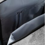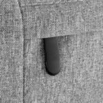 Mochila urbana diseñada para combinar estilo y funcionalidad. Cuenta con compartimento principal con bolsillo acolchado para notebook de hasta 16″ y tablet de hasta 11″, más bolsillos organizadores. Compartimento frontal con dos bolsillos externos, dos laterales (mitad tela, mitad malla elástica) y asa superior negra. Interior forrado en poliéster gris claro. Correas ajustables y espalda acolchada. Incluye tira trasera para sujetar a valijas con manija extensible. Tiradores metálicos.