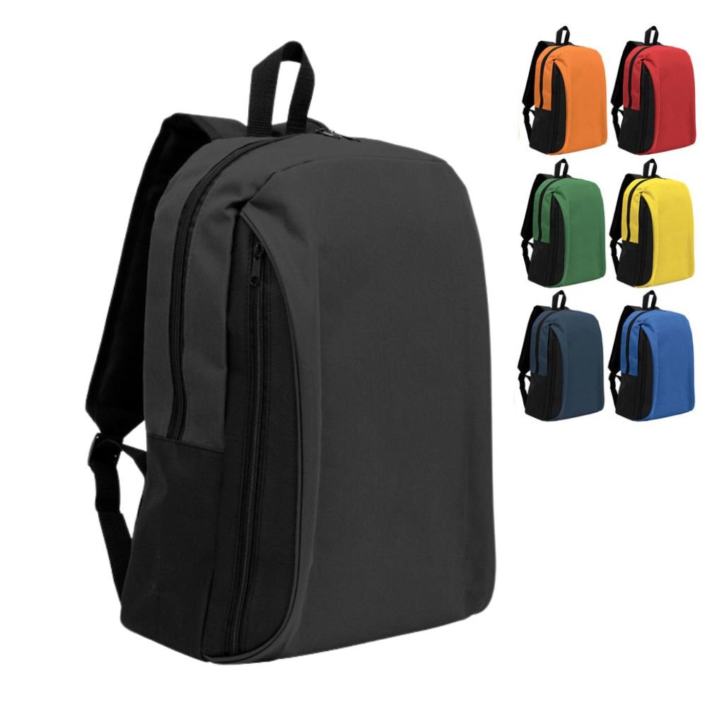 $ 4.880 + IVADescripción general del producto: Mochila confeccionada en Polyester, con 2 bolsillos frontales con cierre y 2 bolsillos laterales elásticos porta botellas. Cuenta con correas regulables.