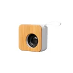 Descripción general del producto: Parlante portátil fabricado en ABS reciclado (rABS) y bambú. Tiene tecnología Bluetooth 5.0 y una batería de500 mAh que ofrece de 3 a 4 horas de reproducción. El parlante cuenta con ranura de tarjeta Micro SD. El parlante cuenta con un botón que permite encender y apagar el dispositivo, pausar y reproducir canciones, contestar y colgar llamados, cambiar a modo radio FM. El parlante cuenta con una función que permite unir dos parlantes en simultaneo para contar con reproducción estéreo. El parlante viene