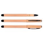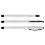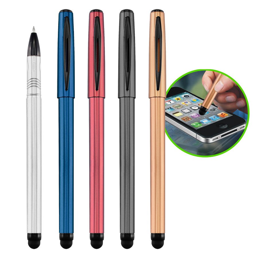 Roller Pen plástico con puntero touch-screen para pantalla táctil, tinta negra. Cuerpo de color metalizado.