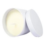 Vela aromática de 8oz en envase redondo de aluminio con tapa. Ideal para regalo de hogar y aromaterapia. Amplia superficie de impresión de logo.