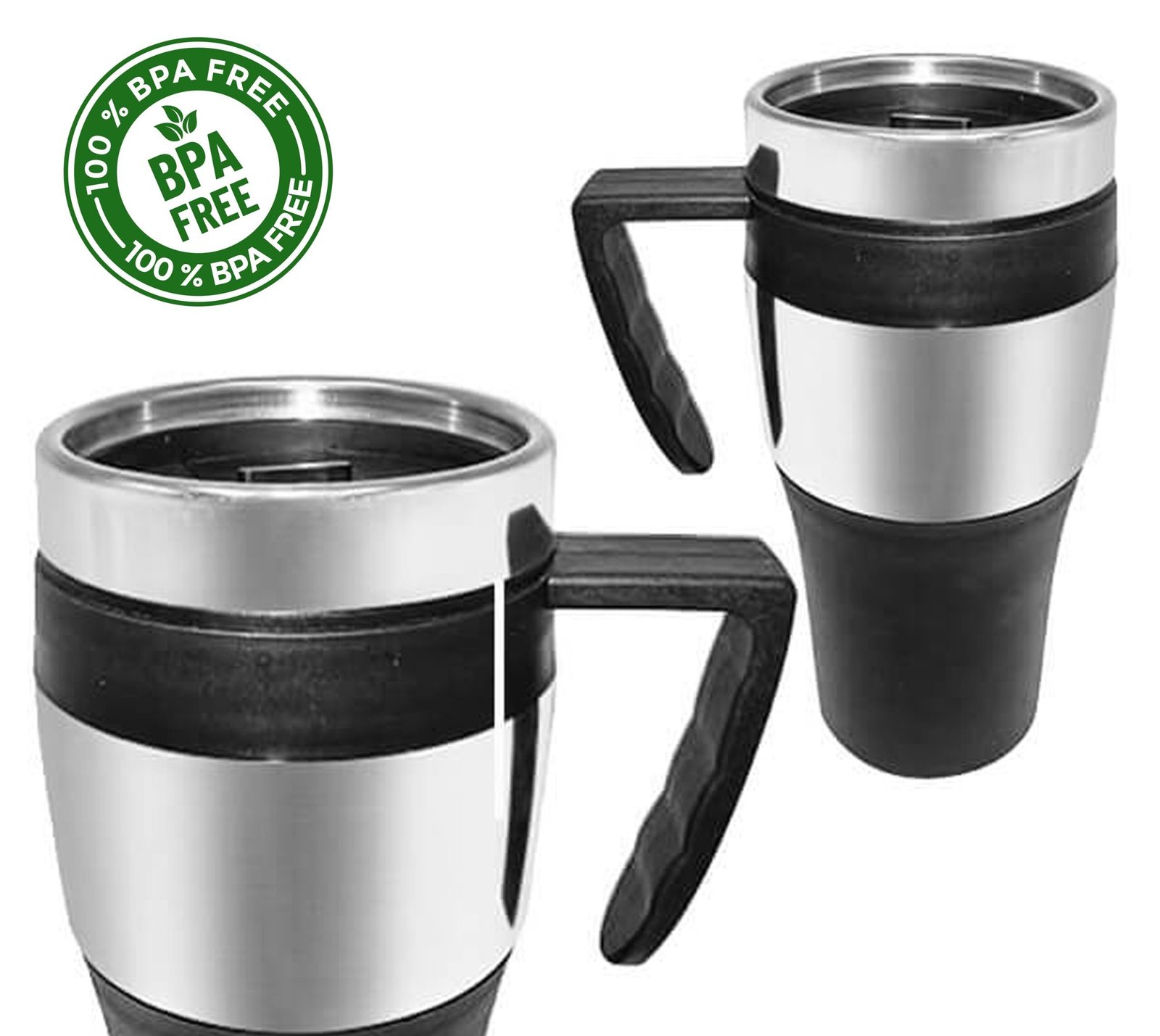 Mug térmico de 450 ml con exterior de acero inoxidable SS201 y doble pared aislante que ayuda a conservar la temperatura de tus bebidas por más tiempo. Cuenta con tapa rosca, dosificador y anillo de silicona antiderrame para mayor seguridad en el transporte. Su interior de PVC negro y diseño moderno lo hacen ideal para el día a día. Se presenta en una caja individual de color negro, perfecto como regalo o artículo promocional. Dimensiones: Ø 8 cm x 16,8 cm.
