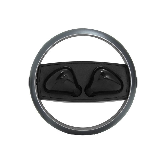Auriculares TWS con sonido de calidad HI-FI y diseño compacto en color negro. Conectividad Bluetooth V5.3 y alcance de hasta 10 metros en áreas abiertas. Ofrecen hasta 4 horas de reproducción continua. Batería de 25 mAh por auricular y 230 mAh en el estuche de carga, con marco giratorio de aluminio. Incluye cable USB tipo C y manual de usuario.