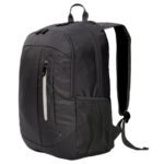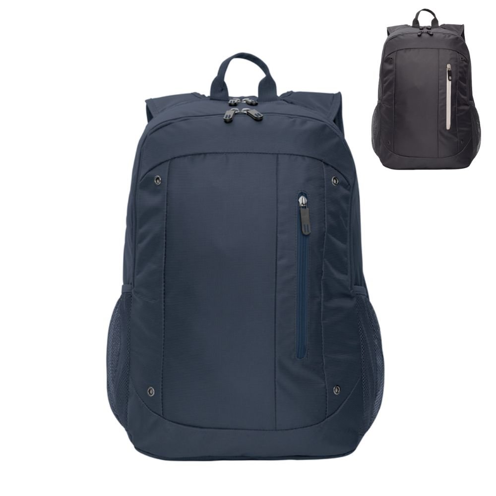 Mochila portanotebook confeccionada en poliéster Jacquard 420D, ideal para uso diario. Cuenta con dos compartimentos con cierre: el principal con división acolchada para notebook de hasta 15” y un bolsillo adicional; el segundo con tres espacios contenedores. Incluye bolsillo frontal con cierre en color y dos bolsillos laterales de red. Correas regulables y espalda acolchadas para mayor comodidad. Cierres metálicos con tiradores de goma con detalles de color.