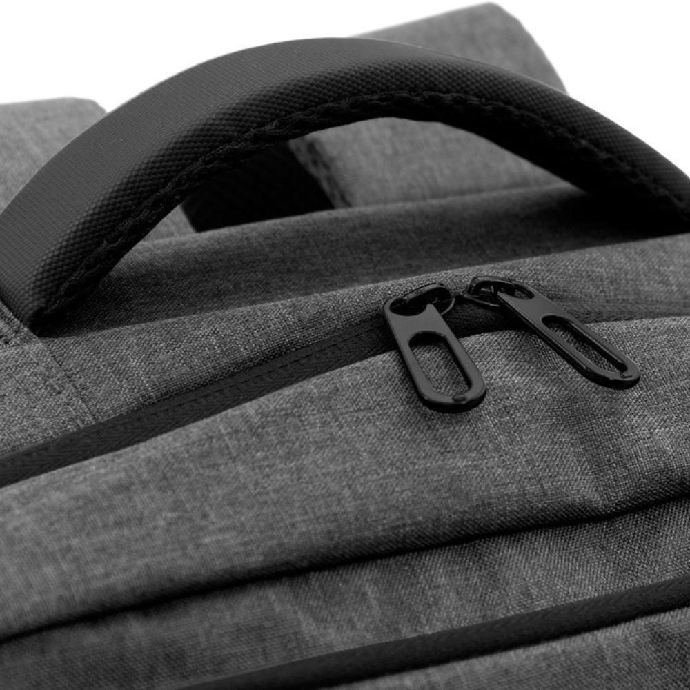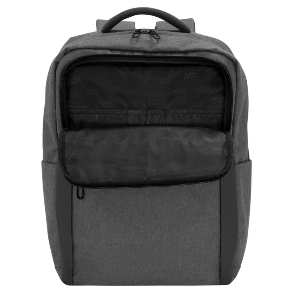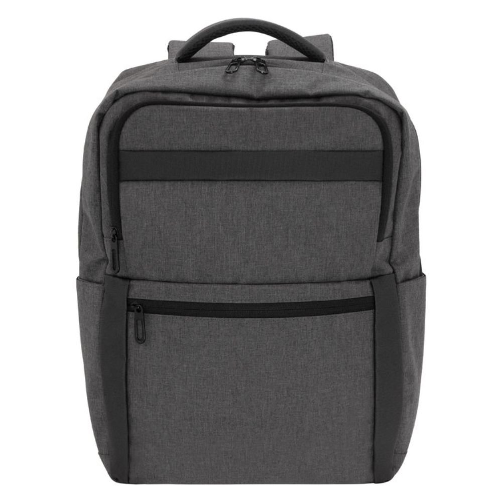 Mochila portanotebook diseñada para transportar hasta 17 pulgadas con estilo y comodidad. Cuenta con dos compartimentos, incluyendo uno principal con bolsillo acolchado para la notebook. Bolsillo frontal con cierre horizontal y dos bolsillos laterales para acceso rápido. Asa superior reforzada, correas ajustables y respaldo con red ventilada, todos acolchados para mayor confort. Tiradores de cierres metálicos en color negro.