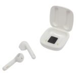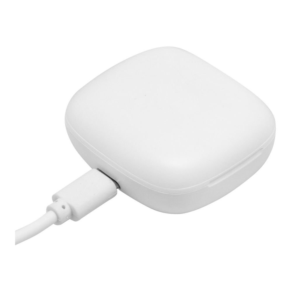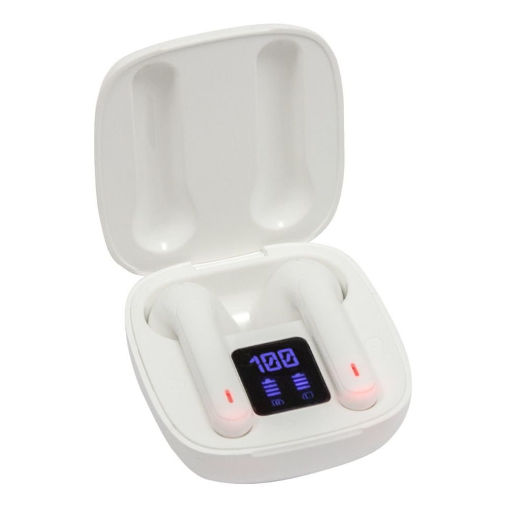 Auriculares Bluetooth inalámbricos fabricados en plástico ABS, con diseño compacto y práctico que incluye un estuche de 5,5 x 5 x 2,5 cm que también funciona como base de carga. Los auriculares de 45 mm cuentan con tecnología touch en ambos lados para controlar funciones como encendido, apagado, reproducción, pausa, avance, retroceso y manejo de llamadas (responder, rechazar o finalizar). Equipados con Bluetooth V5.0, ofrecen un alcance de hasta 10 metros y una autonomía de reproducción de aproximadamente 3 horas. La batería de los auriculares es de 30 mAh, mientras que la del estuche es de 300 mAh, con indicador de carga.