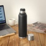Elegante y funcional, este termo de acero inoxidable con capacidad de 1000 ml está diseñado para acompañarte en todas tus actividades. Su estructura de doble pared con recubrimiento de cobre y pintura Powder Coat lo hace resistente a la corrosión, duradero y con excelente conservación térmica. El interior está fabricado en acero 304 y el exterior en acero 201, garantizando calidad y seguridad en cada uso. La tapa a rosca de acero asegura un cierre hermético, mientras que el tapón con apertura a presión permite un uso práctico y eficiente. Mantiene las bebidas calientes por más de 12 horas y frías hasta por 24 horas. Se presenta en una caja de regalo, ideal para obsequios corporativos o personales.