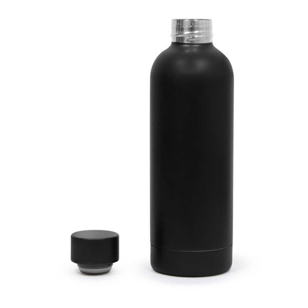 Diseñada para un estilo de vida activo, esta botella térmica de acero inoxidable con capacidad de 500 ml combina funcionalidad y elegancia. Su tecnología de doble pared sellada al vacío mantiene las bebidas calientes hasta por 12 horas y frías hasta por 24 horas. El interior está fabricado en acero 304 de grado alimenticio y el exterior en acero 201, lo que garantiza durabilidad y seguridad. Su diseño compacto y moderno la convierte en la compañera ideal para el día a día. Se entrega en una caja de regalo, perfecta para obsequios personales o corporativos.