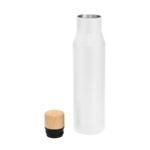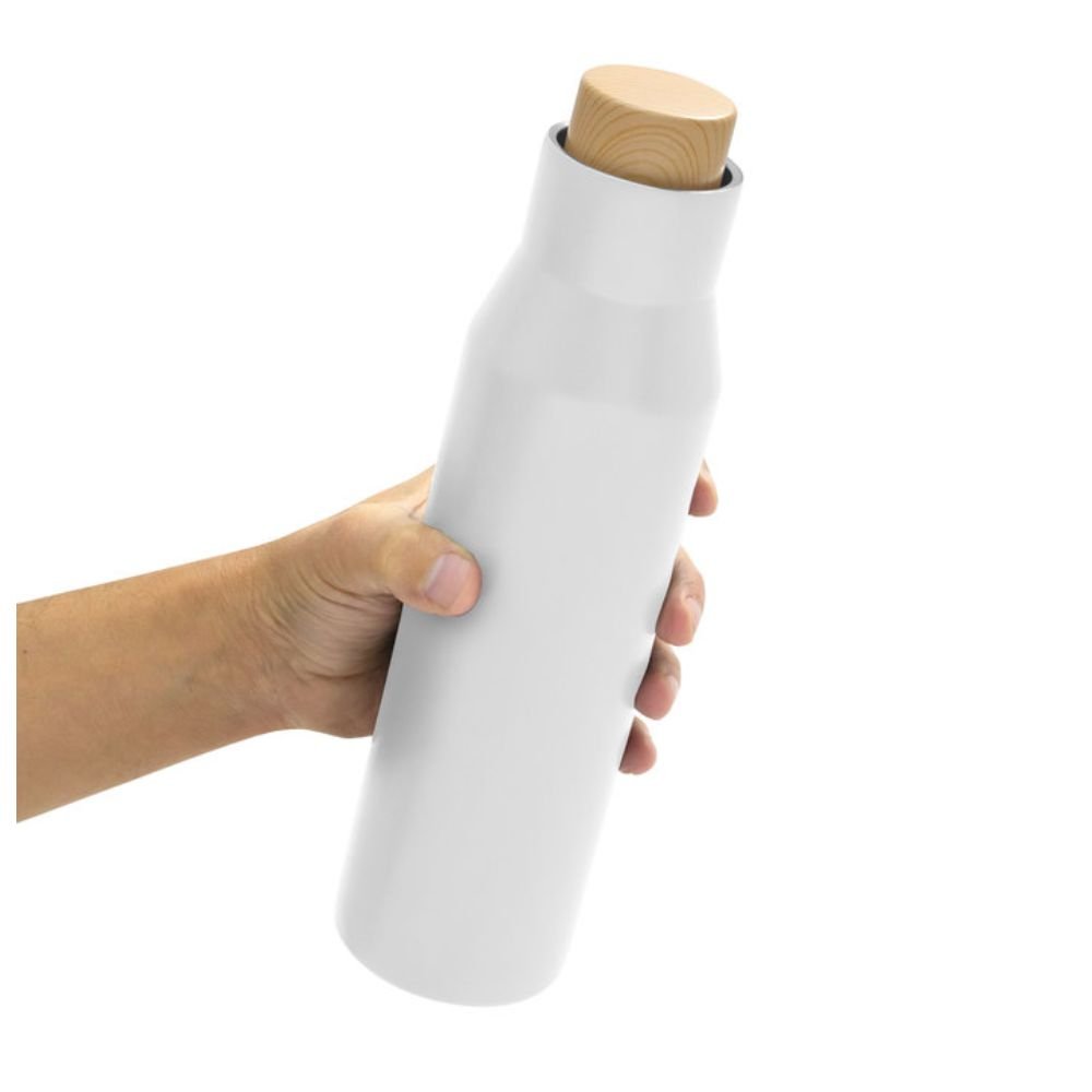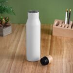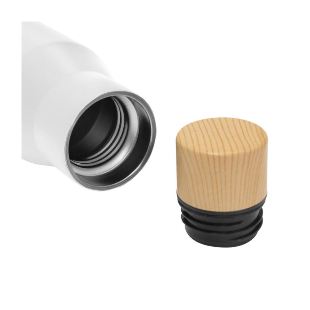 Botella térmica de 500 ml con diseño elegante y funcional, ideal para acompañarte en tus actividades diarias. Fabricada en acero inoxidable con doble pared sellada al vacío, mantiene tus bebidas calientes por más de 12 horas y frías por hasta 24 horas. Su interior es de acero 304 y el exterior de acero 201, con un acabado mate moderno. La tapa a rosca cuenta con anillo de silicona, interior de acero inoxidable 201 y un exterior de polipropileno con imitación bambú, brindando un toque natural al diseño. Sus medidas son Ø 6,8 cm x 26 cm, y se presenta en caja de regalo kraft, perfecta para obsequiar o uso personal.