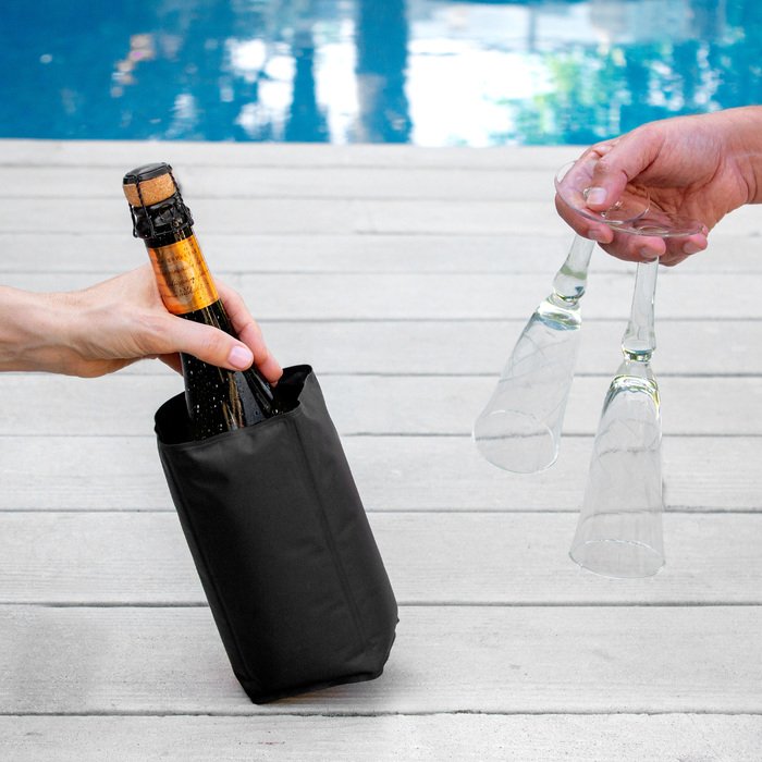 Cooler enfriador de botellas práctico y reutilizable, ideal para mantener la temperatura de tus bebidas por más tiempo. Fabricado en poliéster y PVC, con relleno interior de gel enfriante, se adapta fácilmente al contorno de la botella. Su diseño incluye un cierre de velcro que garantiza una sujeción firme y cómoda. Sus dimensiones son 35 x 17,5 x 0,5 cm, y tiene un peso de 270 g. Una solución eficiente y portátil para mantener tus bebidas frías en cualquier ocasión.