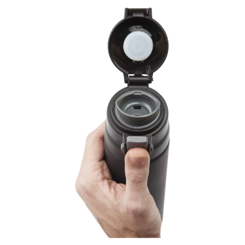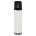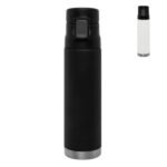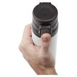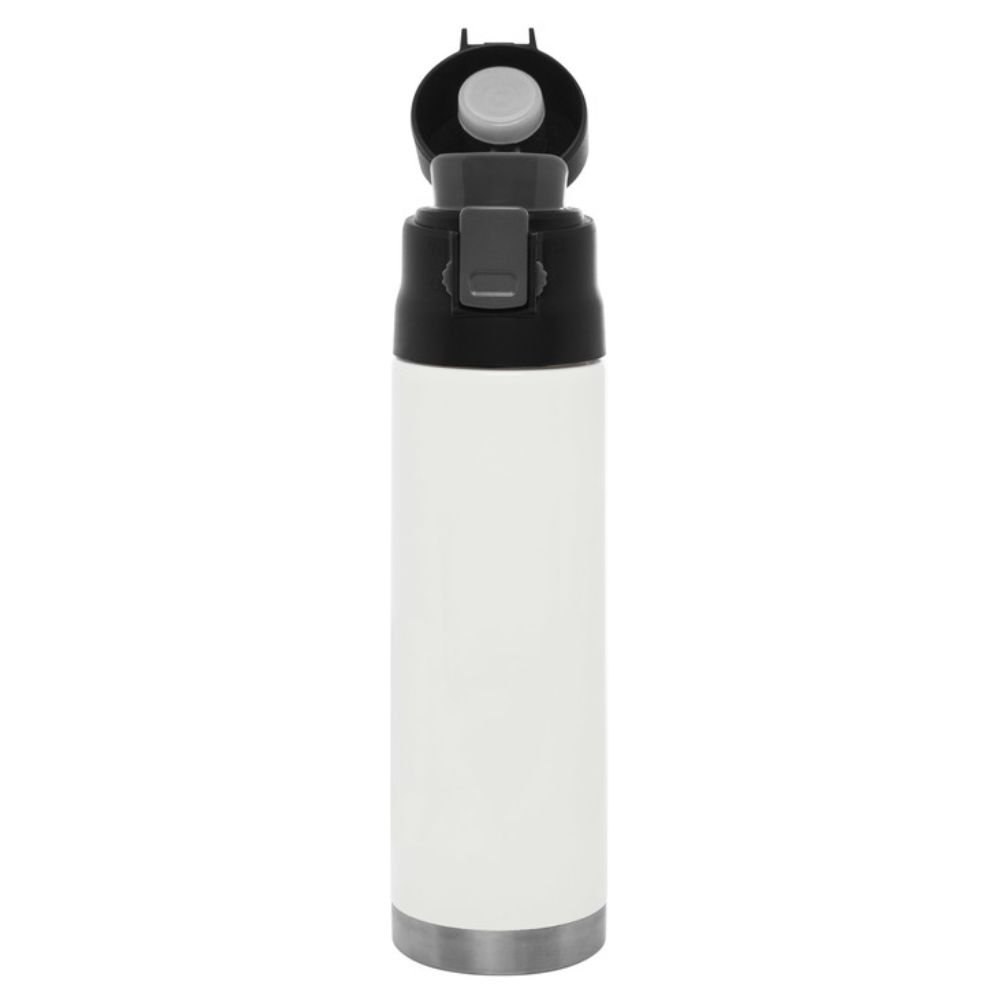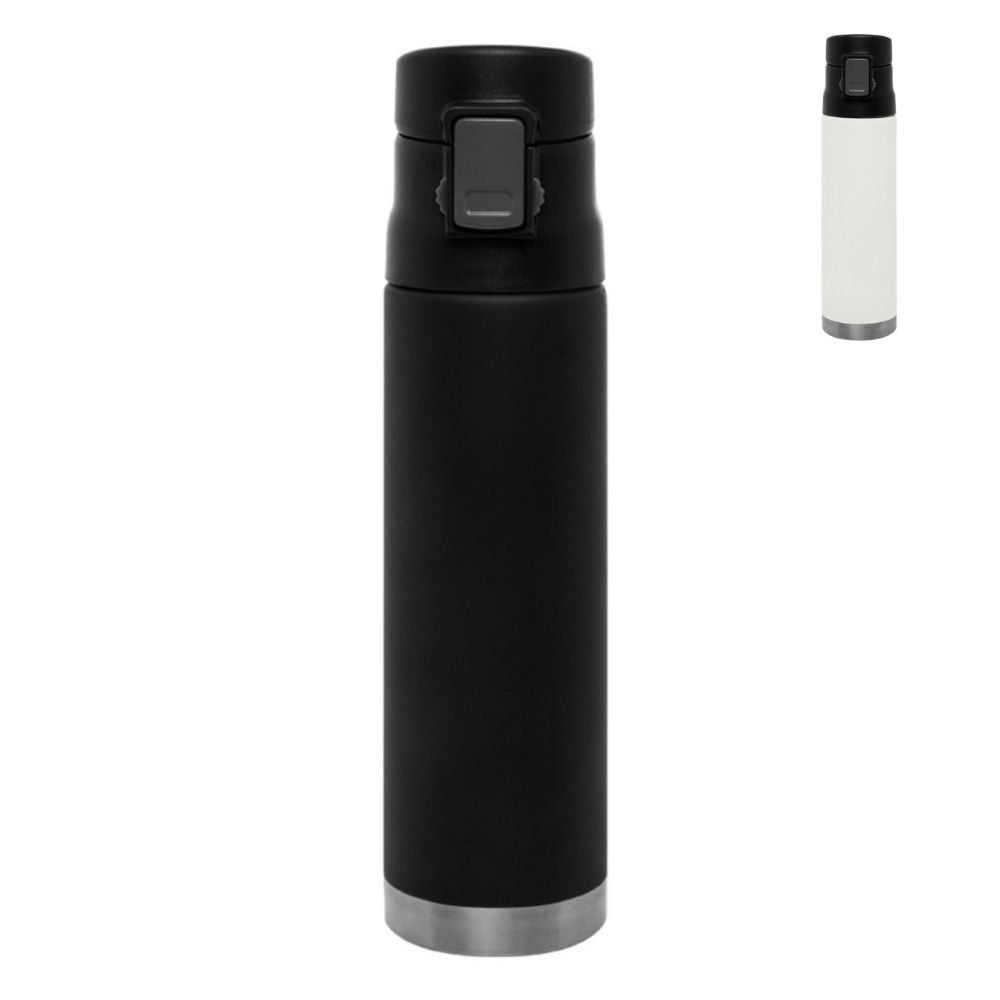 Mug doble pared con interior de acero inoxidable 304 y exterior de acero 201. Cuenta con tapa plástica con botón a presión y traba de seguridad. Mantiene las bebidas frías o calientes por más tiempo. Capacidad de 500 ml y medidas de Ø 7 x 25,5 cm. Presentación en caja de regalo.