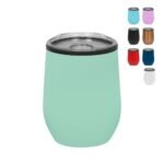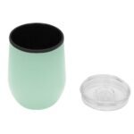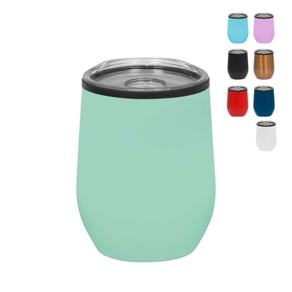 Mug doble pared con interior de plástico y exterior de acero inoxidable 201. Recubrimiento Powder Coat, pintura duradera y resistente a la corrosión. Incluye tapa plástica transparente a presión con anillo de silicona y base antideslizante. Capacidad de 350 ml. Medidas Ø 8 x 11,5 cm. Materiales: polipropileno y acero inoxidable. Presentación en caja de regalo.