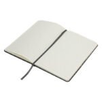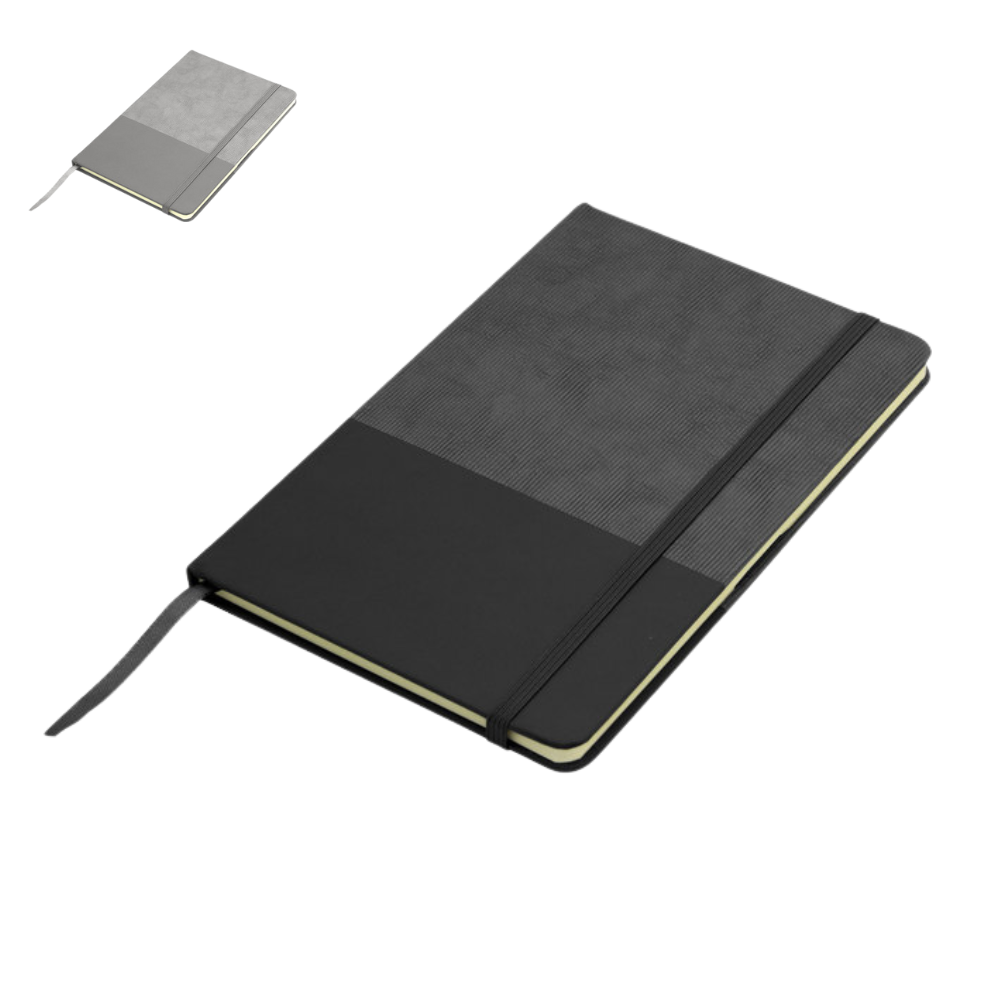 Libreta con tapa de cartón de 1,8 mm recubierta en poliuretano bicolor y textura suave al tacto. Cuenta con 80 hojas rayadas en papel obra crema de 70 g, encuadernación cosida y cinta señaladora a juego con el color de la tapa. Incluye cierre con banda elástica del mismo tono para mantenerla siempre segura y lista para usar.