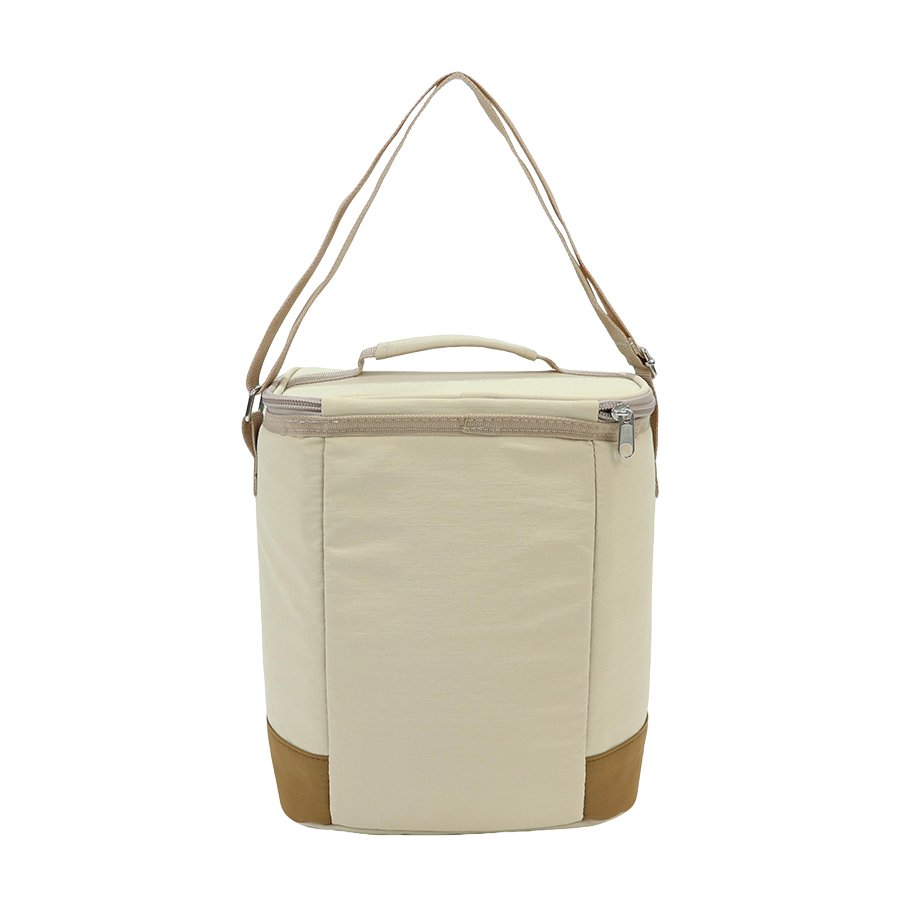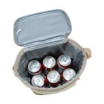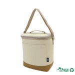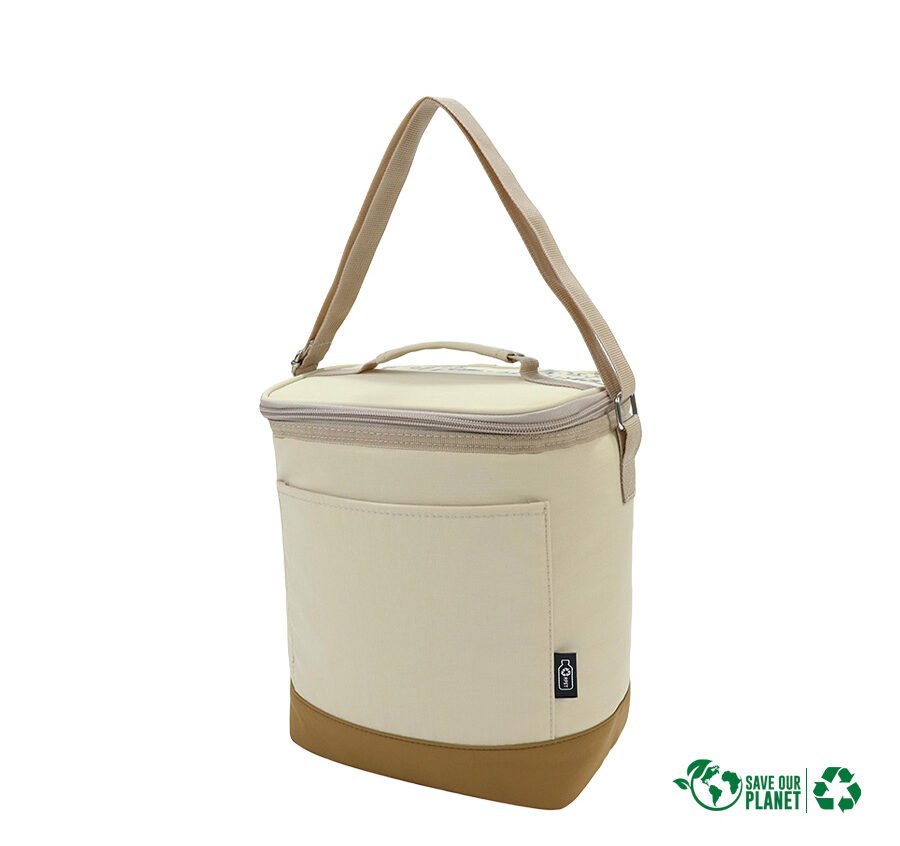 Bolso cooler térmico Eco Veli, confeccionado en resistente tela RPET reciclada con interior aislante de PEVA y acolchado de esponja PE FOAM, que mantiene la temperatura de alimentos y bebidas por más tiempo. Con un tamaño de 21.5 x 25.5 x 15.5 centímetros y capacidad de 8.5 litros, este bolso incluye un práctico bolsillo frontal, asa larga para colgar al hombro, mango de mano y cierre con apertura de 300°, mientras que su base de nylon Ripstop impermeable garantiza durabilidad y protección en cualquier superficie. Disponible en color beige, combina materiales sostenibles y funcionalidad, siendo ideal para picnics, salidas al aire libre o uso diario, y se presenta en bolsa plástica transparente, con posibilidad de personalización mediante serigrafía o DTF.