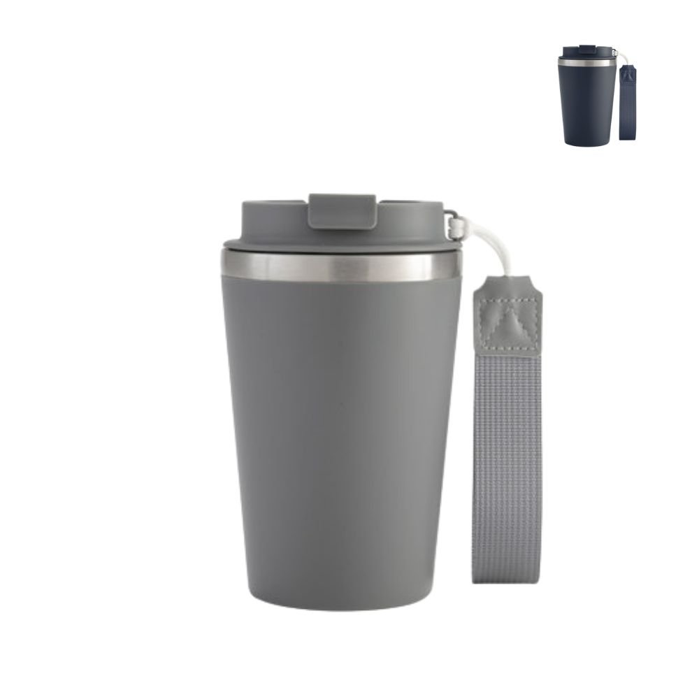 Mug de doble pared con diseño práctico y elegante, ideal para llevar tu bebida favorita en el día a día. Cuenta con interior de acero inoxidable 304 y exterior de polipropileno mate, tapa a rosca con anillo de silicona y seguro antiderrame del mismo color, además de asa resistente de poliuretano y poliéster. Con capacidad de 350 ml y dimensiones de 8,9 cm de diámetro por 15 cm de alto, combina funcionalidad y estilo, presentándose en caja de regalo kraft, perfecto para uso personal o como regalo.