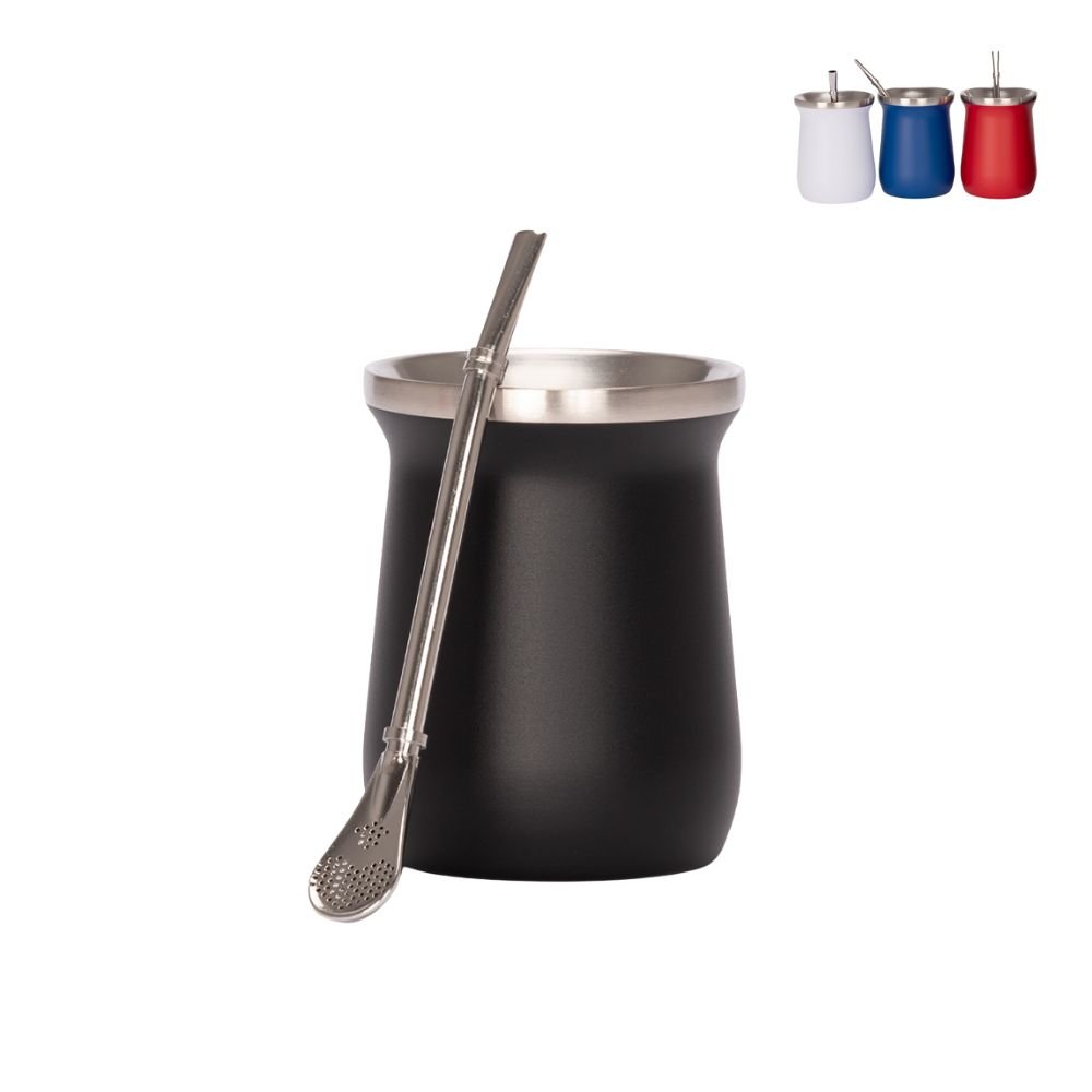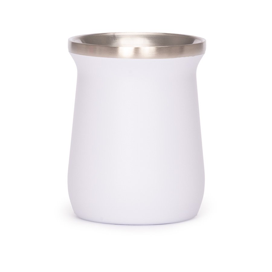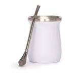 Vaso térmico metálico doble pared aislante, ideal para disfrutar de tu mate u otras bebidas calientes manteniendo la temperatura por más tiempo. Cuenta con cubierta de polipropileno (PP) mate, interior en acero inoxidable 304 SS y exterior en acero inoxidable 201 SS, con capacidad de 300 ml y certificado BPA FREE. Incluye bombilla de acero inoxidable especialmente diseñada para mate. Con dimensiones de vaso Ø8,1 x 10,5 cm y bombilla 15,5 x 2,1 x 1 cm, se presenta en plástico burbuja y caja de cartón laminado negro, disponible en colores blanco, rojo, negro y azul marino. Perfecto para grabado láser, serigrafía o DTF, combina funcionalidad, estilo y seguridad para uso diario.
